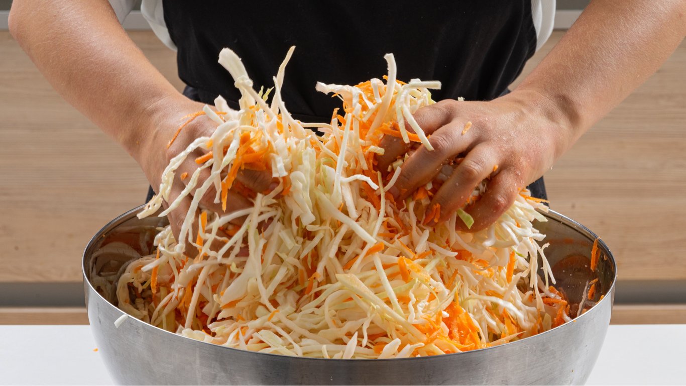 - Перемішайте два овочі руками до появи соку.