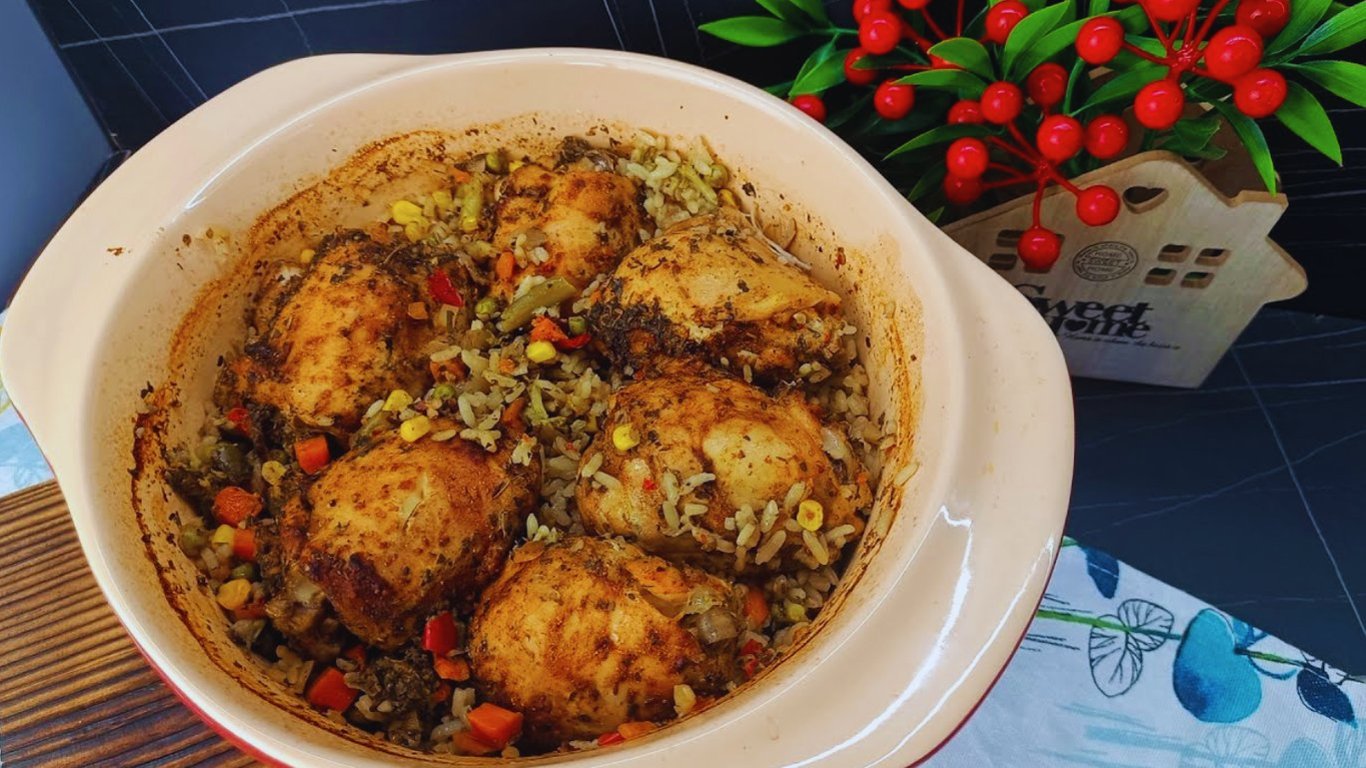 This dish is a real find for those who appreciate delicious, home-cooked meals without the hassle. Chicken thighs, rice, and vegetables are baked together in the oven, absorbing the aromas of spices and soy sauce. The result is tender chicken, fluffy rice, and vibrant vegetables that come together to create a harmonious flavor.
