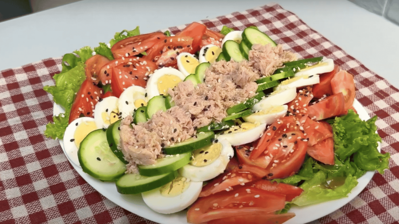 Цей салат створений для моментів, коли хочеться чогось простого, свіжого й по-домашньому смачного. Соковиті овочі, ніжний тунець, яйце та легка заправка без майонезу — саме той варіант, який не перевантажує, але дарує задоволення.