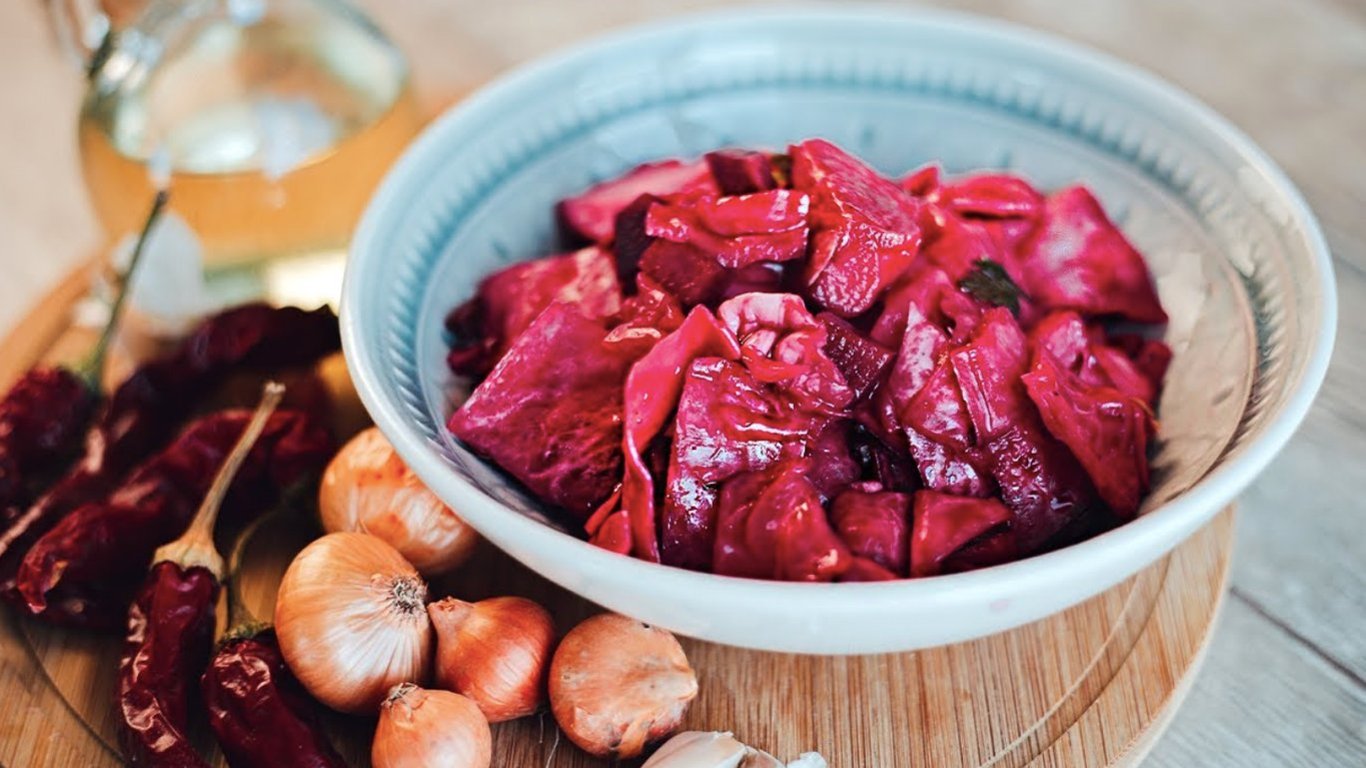 Ця маринована капуста по-грузинськи — справжня перлина серед домашніх закусок. Вона поєднує яскравий колір буряка, гостроту перцю чилі, аромат часнику та пряність спецій. Капуста виходить хрусткою, соковитою та насиченою смаком, який не залишає байдужим. Такий рецепт — ідеальний для святкового столу або просто до гарячої картоплі.