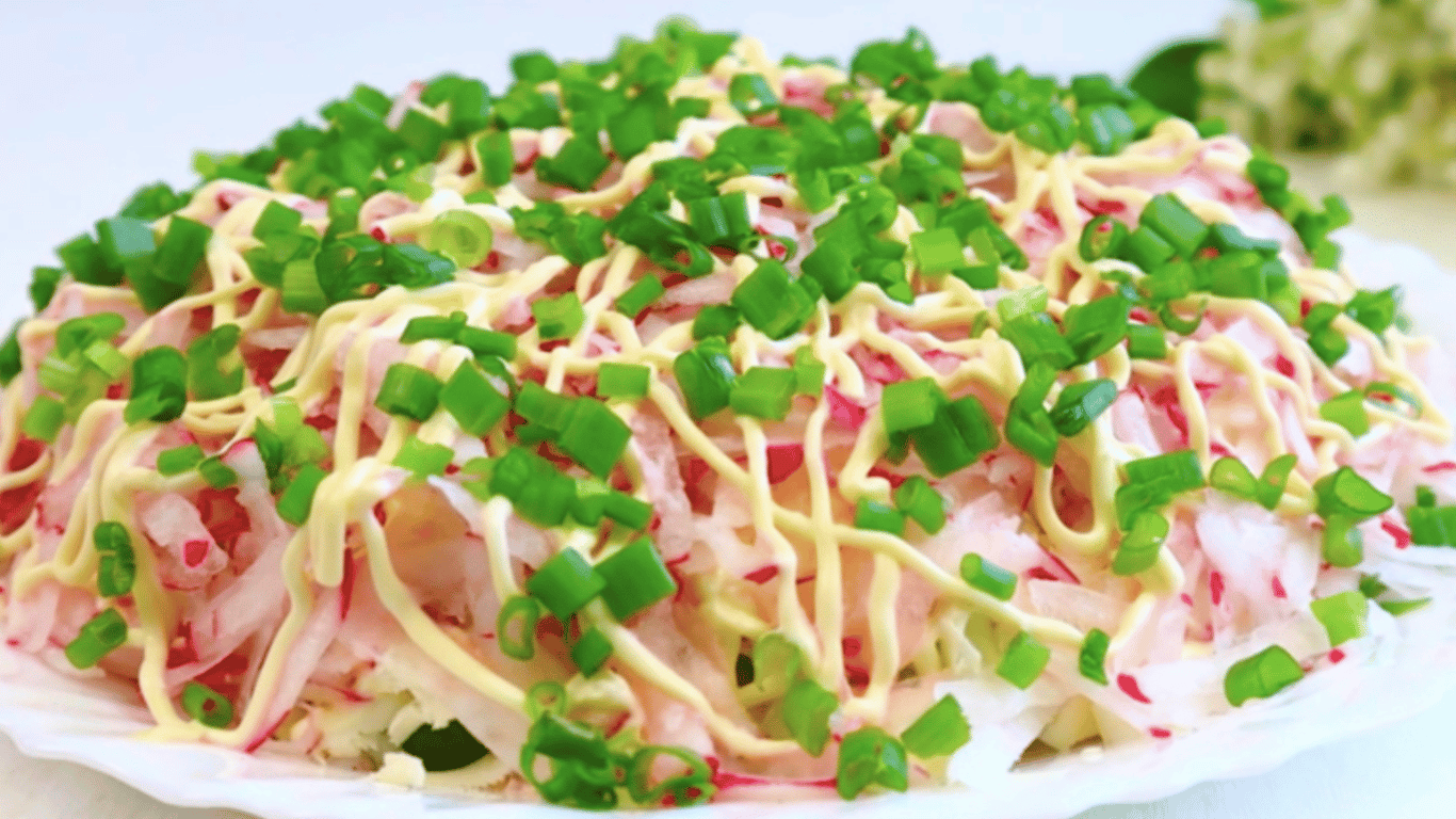 Цей салат — справжня знахідка для будь-якої нагоди. Він одночасно легкий, соковитий і поживний. Ніжна текстура крабових паличок, свіжість огірка та редиски, аромат часнику й вершковість сирка створюють ідеальний баланс смаку. Салат можна податий на святковий стіл, і до обіду, і навіть взяти з собою на природу — він завжди буде доречним.