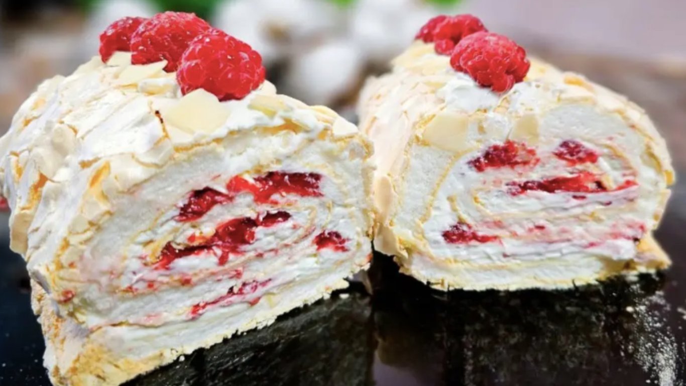Цей меренговий рулет із малиною — справжня кондитерська розкіш, яку легко приготувати вдома. Хрустка зовні, але м’яка всередині меренга поєднується з ніжним лимонно-сирним кремом і яскравою ягодою. Десерт виходить легким, елегантним і настільки смачним, що нагадує витвір з французької кондитерської. Ідеальний варіант до святкового чаю чи романтичної вечері.