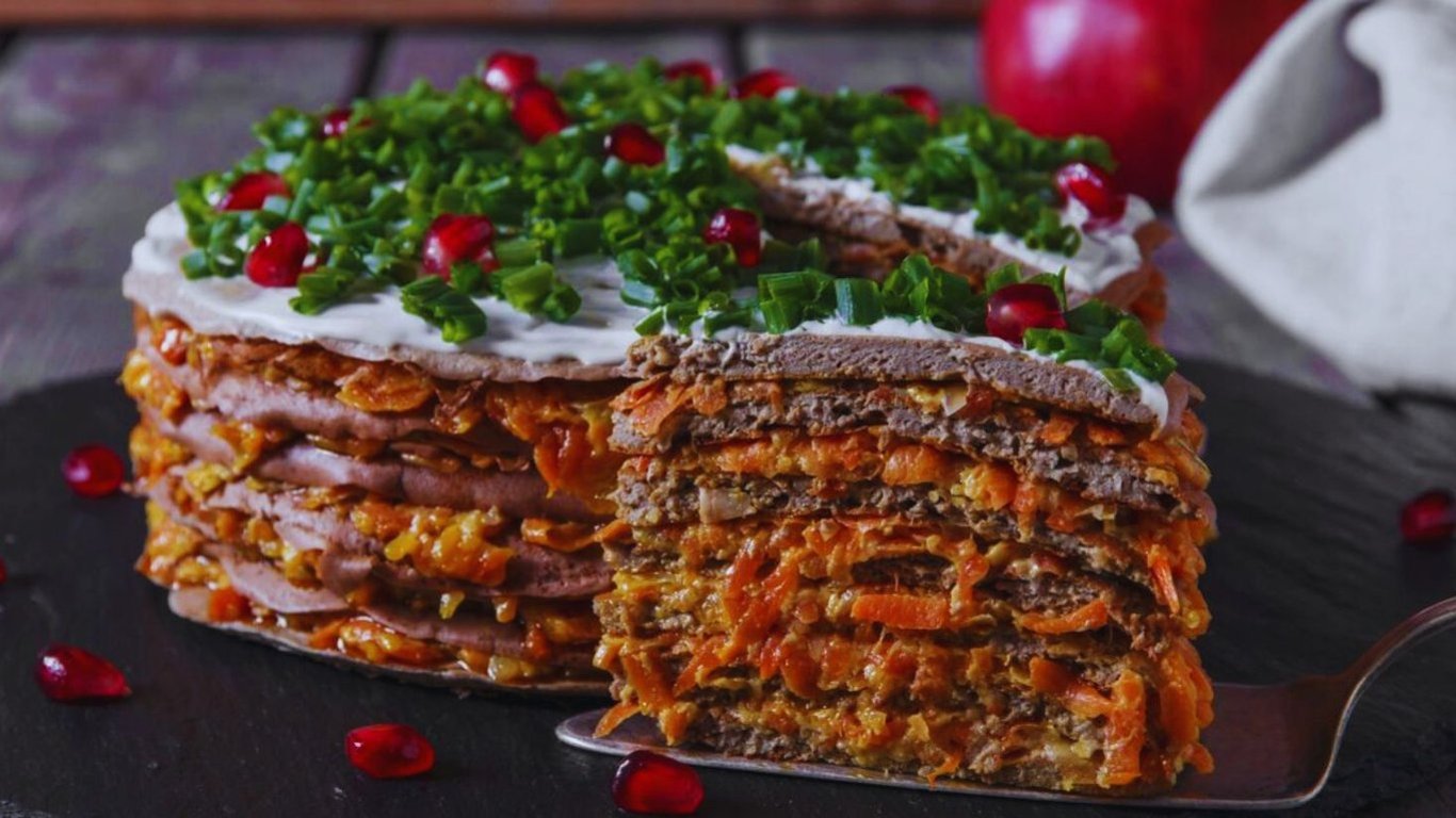 За цим рецептом торт виходить дуже смачний, не сухий і завжди на святковому столі буде однією з улюблених страв. Чудова закуска для будь-якого приводу.