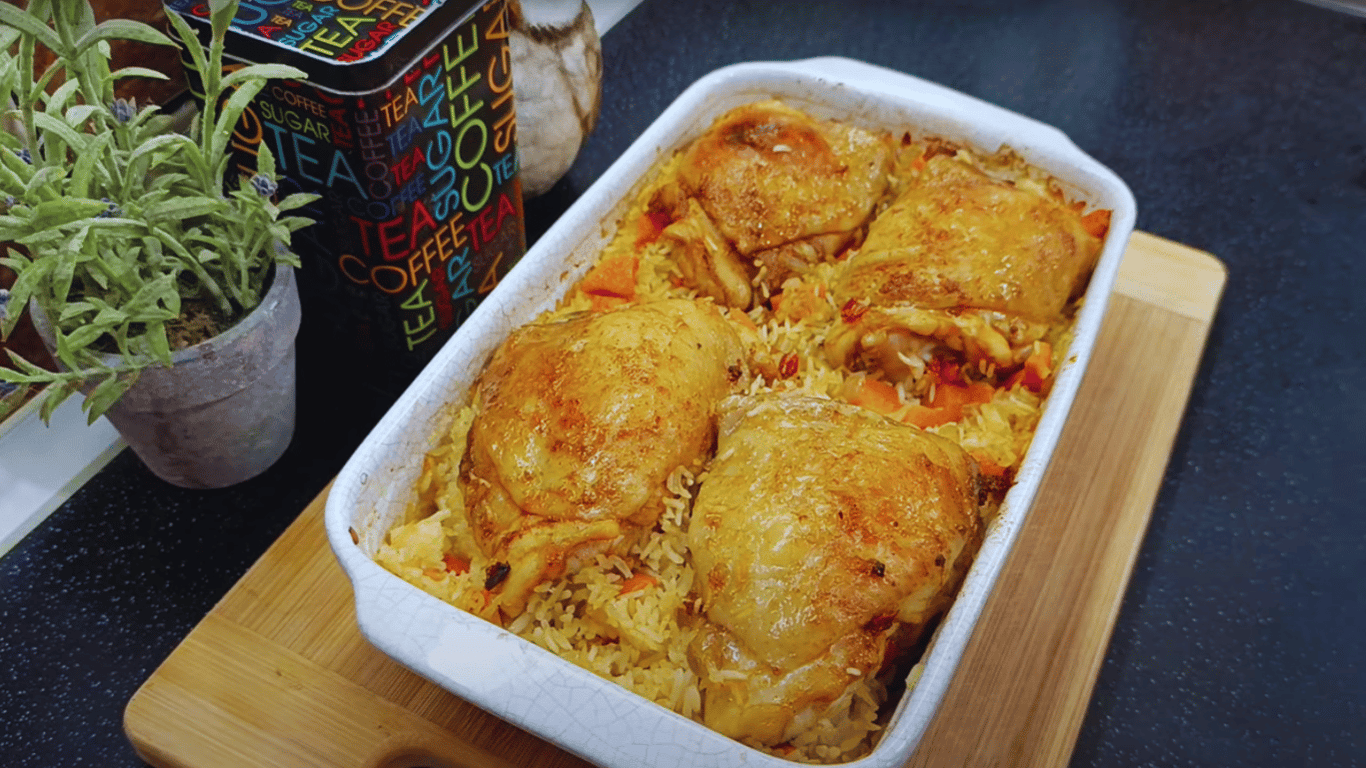 Рис з куркою в духовці — це зручний і смачний варіант, коли не хочеться витрачати багато часу на приготування. Усього одна форма й ви маєте соковиту курку та розсипчастий рис з овочами, які чудово смакують разом.
