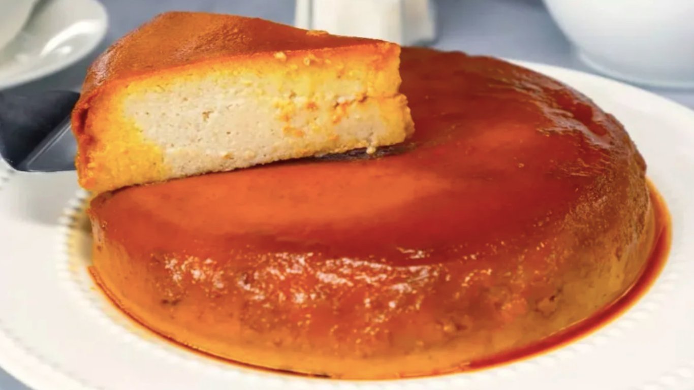 Готовый торт достать с водяной бани, полностью остудить при комнатной температуре, после чего поставить в холодильник минимум на 2 часа для стабилизации текстуры. Перед подачей аккуратно перевернуть торт на тарелку так, чтобы карамель оказалась сверху, и нарезать порционными кусочками.