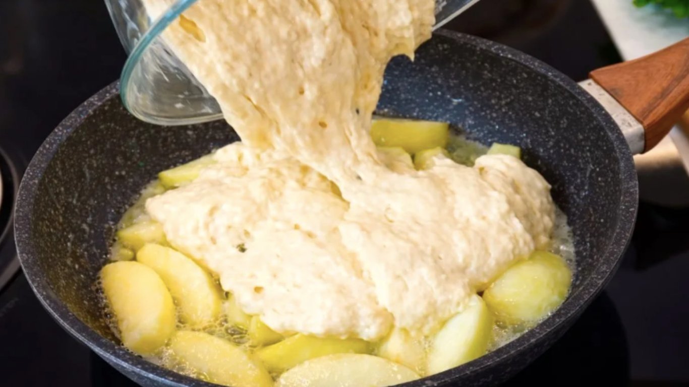 Яблочный пирог на сковороде за 25 минут — просто залить тестом