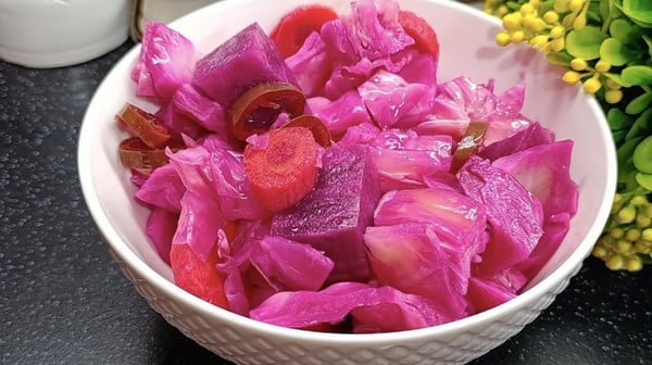 Хрустящая закуска со свеклой на Сочельник — маринованная капуста