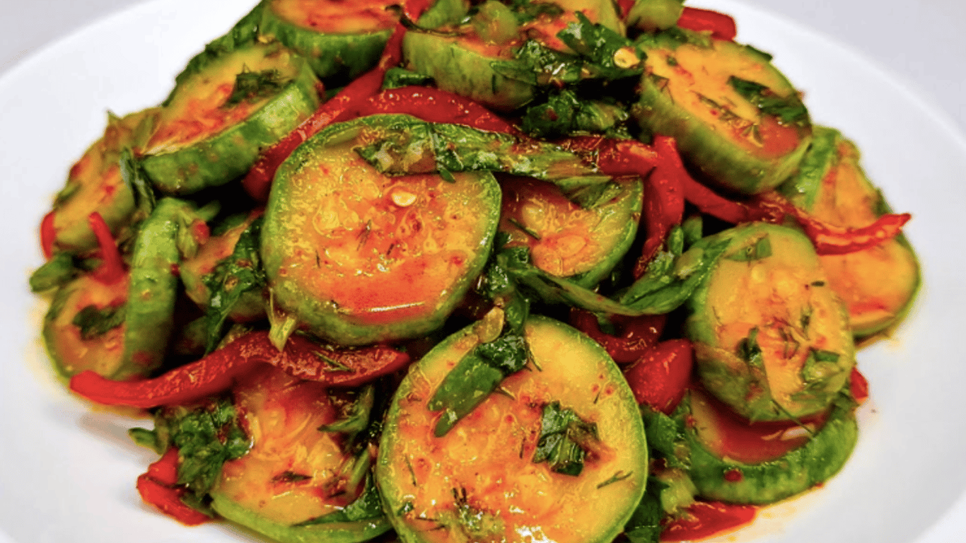 Этот салат — настоящая находка для лета. Легкий, хрустящий, с пряным ароматом кориандра, чеснока и острого масла. Готовится просто, а на вкус ярко, подавайте как закуску, гарнир или закручивайте в банки на зиму.