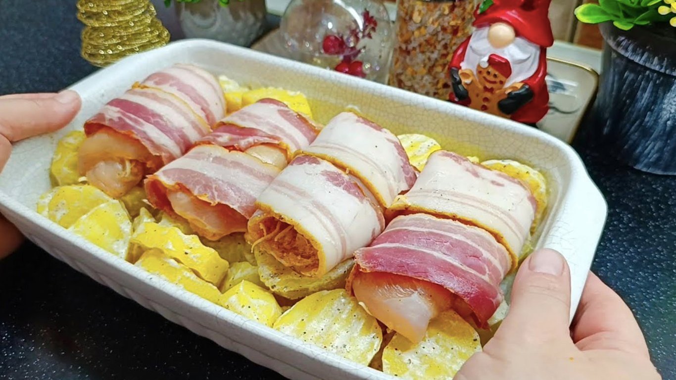 Куриные рулетики в беконе с картофелем — это беспроигрышный вариант горячего блюда для новогоднего и праздничного меню. Нежное куриное филе остается сочным, бекон добавляет яркого аромата, а картофель пропитывается соусом и запекается до мягкости. Такое блюдо выглядит эффектно, готовится без лишних хлопот и всегда исчезает со стола одним из первых.