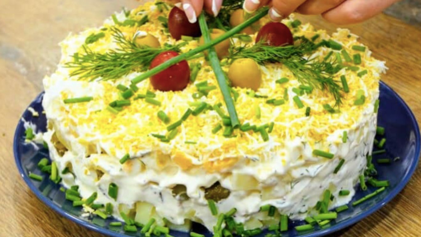 Салат "Французский" на Новый год — это нежное многослойное блюдо с мягким сливочным соусом и гармоничным сочетанием простых ингредиентов. Он выглядит празднично, легко нарезается и хорошо держит форму после остывания. Благодаря сливочному сыру, йогурту и легкой кислинке лимона вкус получается деликатным и сбалансированным.