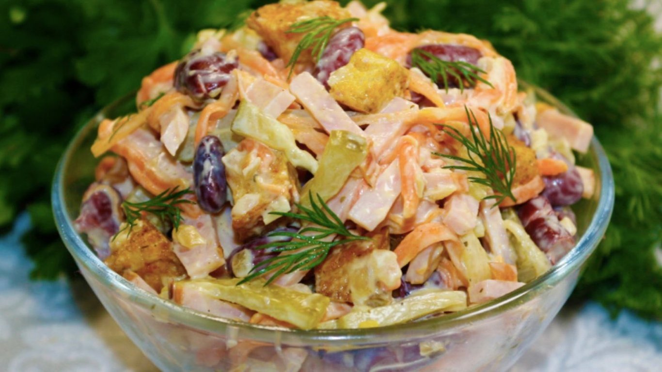 Салат "Минутка" с фасолью и ветчиной — быстро, вкусно, питательно