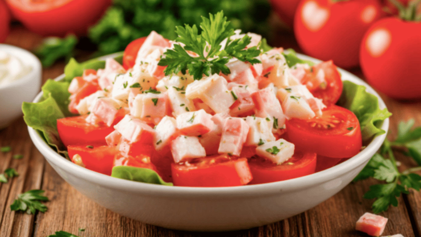Салат Розовый Коралл — идеальное летнее блюдо, которое готовится всего за 10 минут из трех основных ингредиентов. Сочные помидоры, нежное крабовое мясо и сливочный плавленый сыр создают невероятно легкую и свежую комбинацию. Этот рецепт станет вашим любимым как для быстрого ужина, так и для праздничного стола.