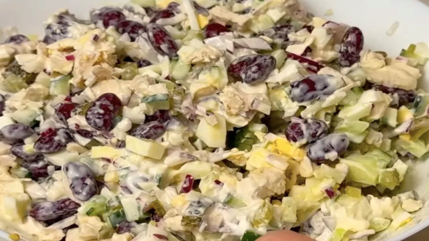 Салат с фасолью и куриным филе сочетает белковую основу, свежие и маринованные овощи и нежную заправку. Рецепт быстрый и простой в исполнении, а блюдо получается сытным и ароматным. Такой салат легко заменяет ужин и подходит для праздничного стола или повседневного перекуса.