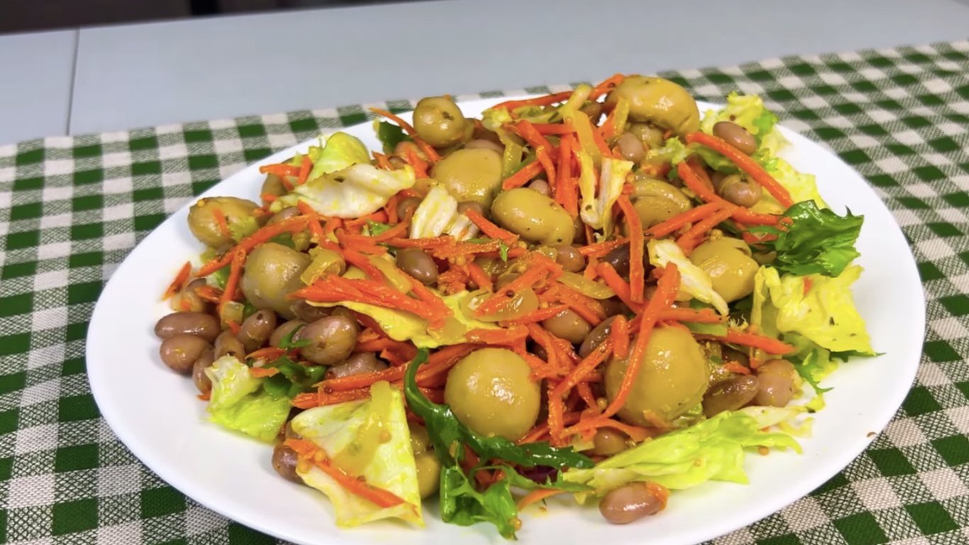 Постный салат с фасолью и грибами — сытный рецепт на ужин