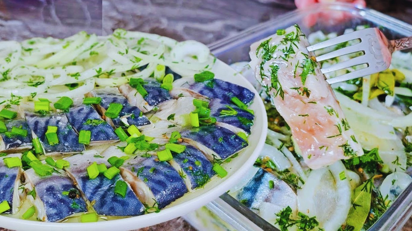 Слабосолона скумбрія за 5 хвилин — холодним способом у маринаді