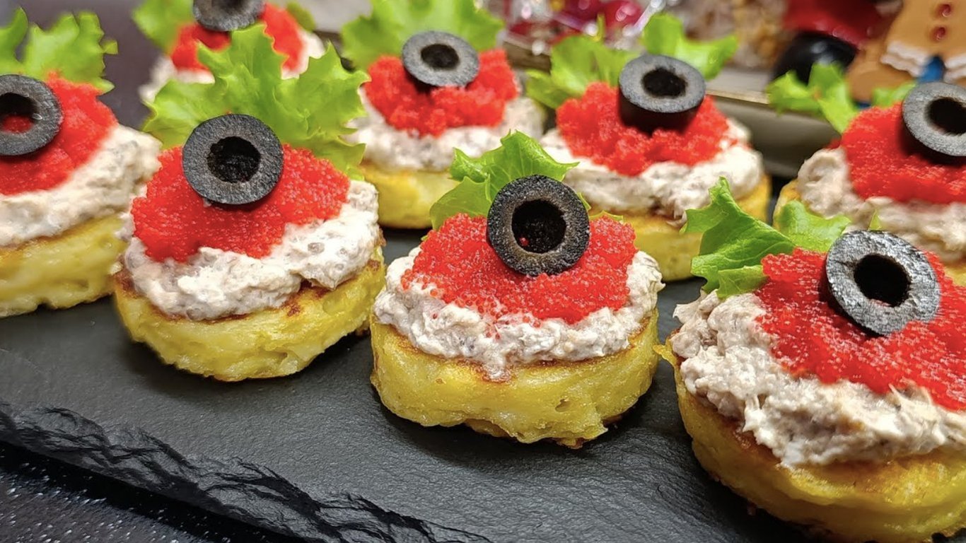 Міні-деруни з сардинами та крем-сиром — це святкова закуска, яка виглядає ефектно і готується просто. З золотистою скоринкою, прикрашені ікрою та оливками, вони стануть прикрасою будь-якого столу.